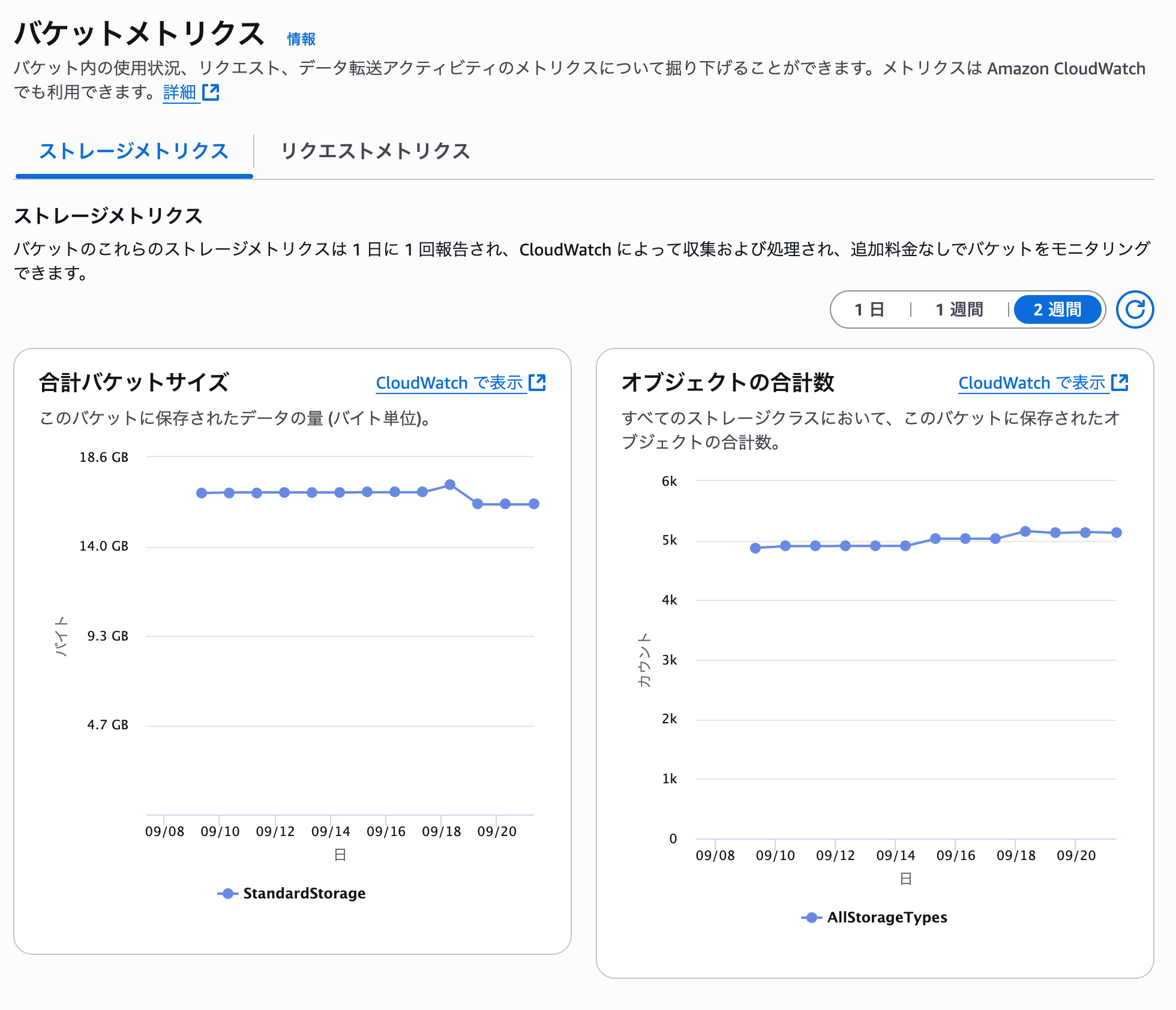 約16GBぐらいあることがわかります。また、5000オブジェクトが存在しています。